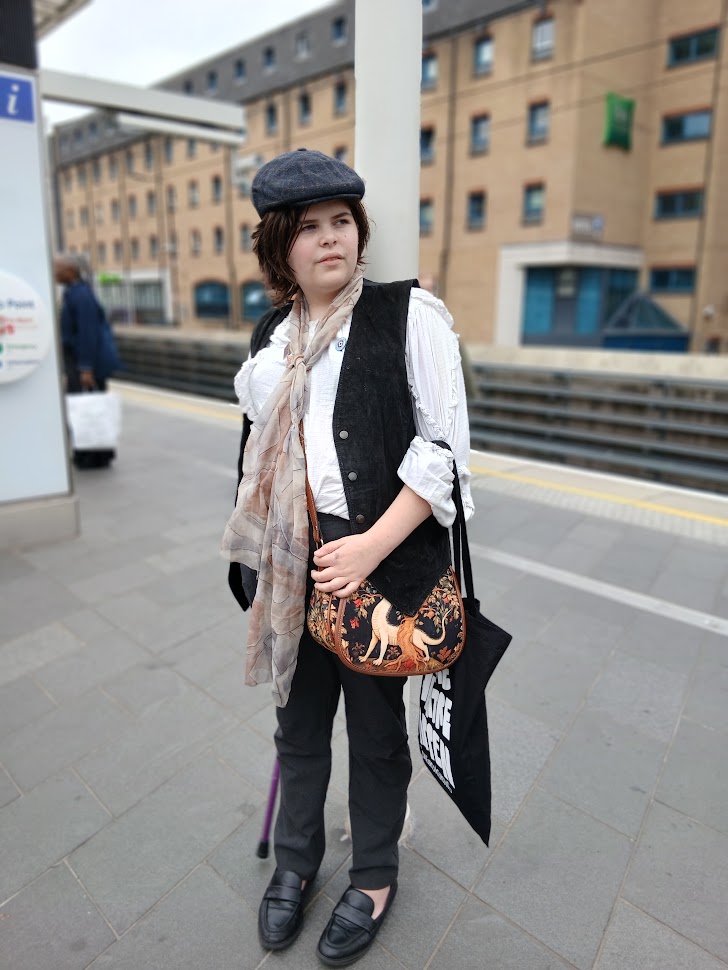 This was our second year at Musical Con and we had a lovely time last year but this year, I was a little wary. The schedule took a while to come out and when it did, there was a bit of a lack of big shows on the main stage. Last year, there was “Oliver!”, “Les Mis” and “Hadestown” and this year, the only one I really wanted to see was “The Producers”. The two big names that VK would have really loved – Eva Noblezada and Reeve Carney – were both on the Sunday and we only had Saturday tickets. So I wondered if there would be a little less to do this year, but VK was excited anyway. And dressed as Gavroche, natch: