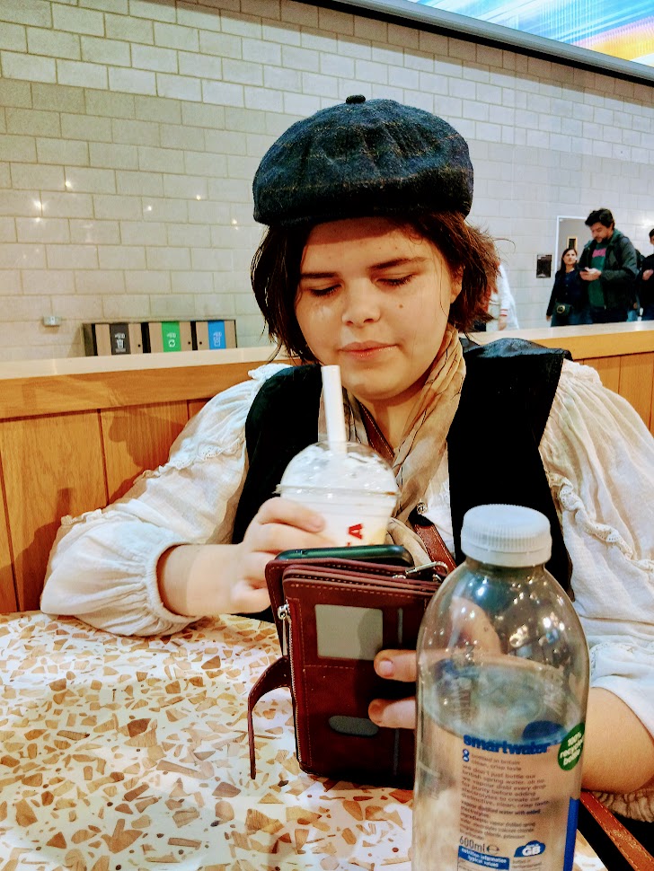 By about 3, we were both exhausted and ready to go. We’d left home super early to make sure we were there in time for the masterclass and it had been a knackering week, with the Echobelly gig and our roof being repaired. So we went to the Costa just outside the Con and sat for a while in the relative peace, enjoying restorative coffee and frappe.