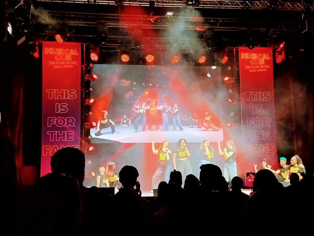 As I was watching stuff on the main stage, VK was wandering around the market stalls and eyeing up theatre merch. I’d bumped into some friends from Highams Park earlier on but apart from that spent a fair amount of time on my own while my child did their own thing. Next time, I need a stagey sidekick to come with me. We did reconvene for lunch – chicken and fries for me, just fries for VK – and listened to the surprise cast reunion (“Clueless”) while we ate. Just like last year, there were no tables so we sat on the floor but it was just good to sit down for a bit.