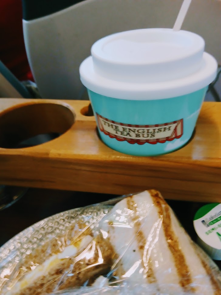I bet you’re wondering about the logistics of this whole “tea on a moving vehicle” thing aren’t you? Well, so was I. The answer was cable ties. The cake stand was cable tied down to the drinks holder, which was bolted on to a small table in front of us. We had places to put our drinks, a plate for scones and space for sandwiches.