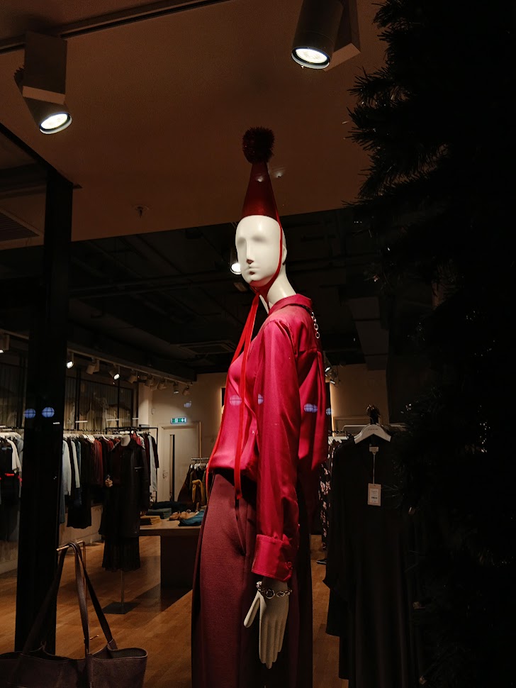 While we’re in Central London, it’s probably worth nipping round the Met, Circle or Hammersmith and City Lines to Liverpool Street, which has had such a Lizzy Line glow up of late. I’m not keen on his choice of perfume – ngl, that musty smell is an unusual choice – but the polka dot detail throughout the outfit make for a stunning effect: