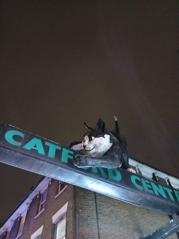 It was a surreal thing to go to as a matinee because it’s so focused around nightlife but, this being November, it was dark when we emerged at 16:45. We went in search of dinner and, along the way, found this Emcee-like mannequin: